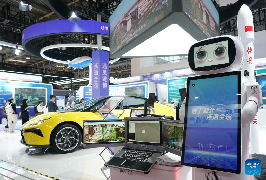 The exhibition area of central China's Hubei Province is seen at the second China International Supply Chain Expo in Beijing, China, Nov. 27, 2024. As the province of honor for this year's expo, Hubei Province has invited 28 of its enterprises which showcased more than 70 exhibits during the event. (Xinhua/Zhang Haofu)
