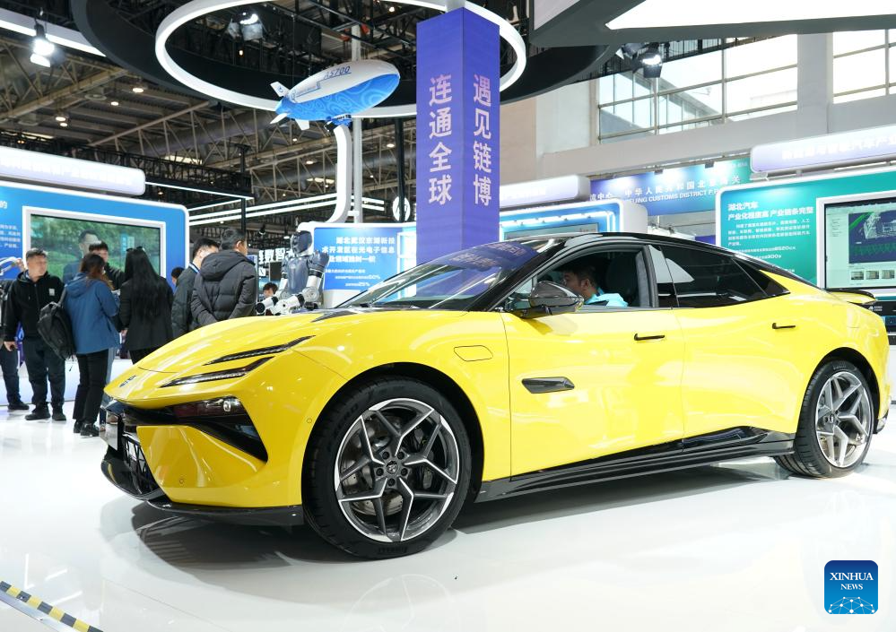 A Lotus vehicle is displayed at the exhibition area of central China's Hubei Province of the second China International Supply Chain Expo in Beijing, China, Nov. 27, 2024. As the province of honor for this year's expo, Hubei Province has invited 28 of its enterprises which showcased more than 70 exhibits during the event. (Xinhua/Zhang Chenlin)