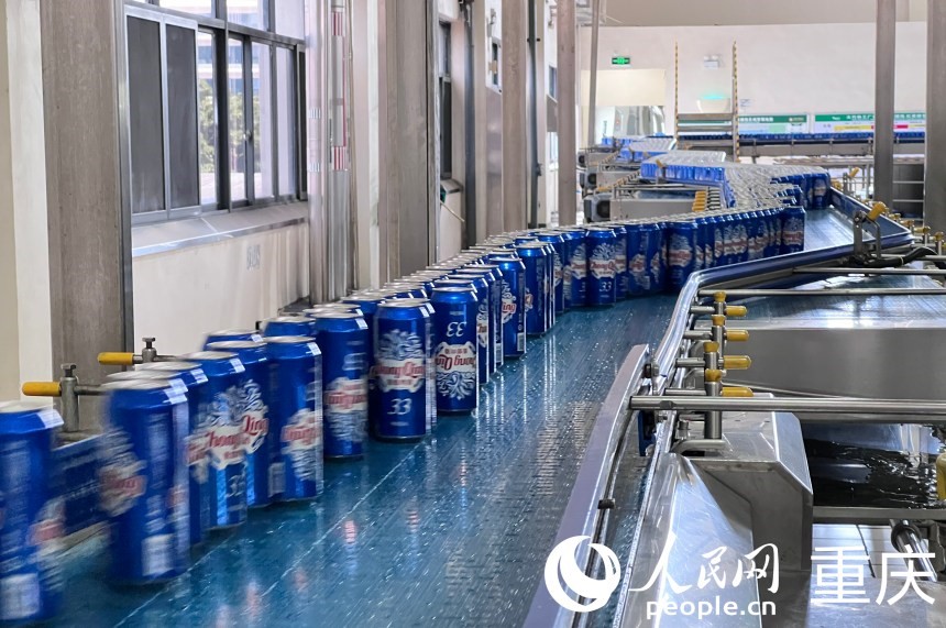 Photo shows a ring-pull can production line at Chongqing Brewery’s packaging workshop in southwest China's Chongqing Municipality. (People's Daily Online/Hu Hong)