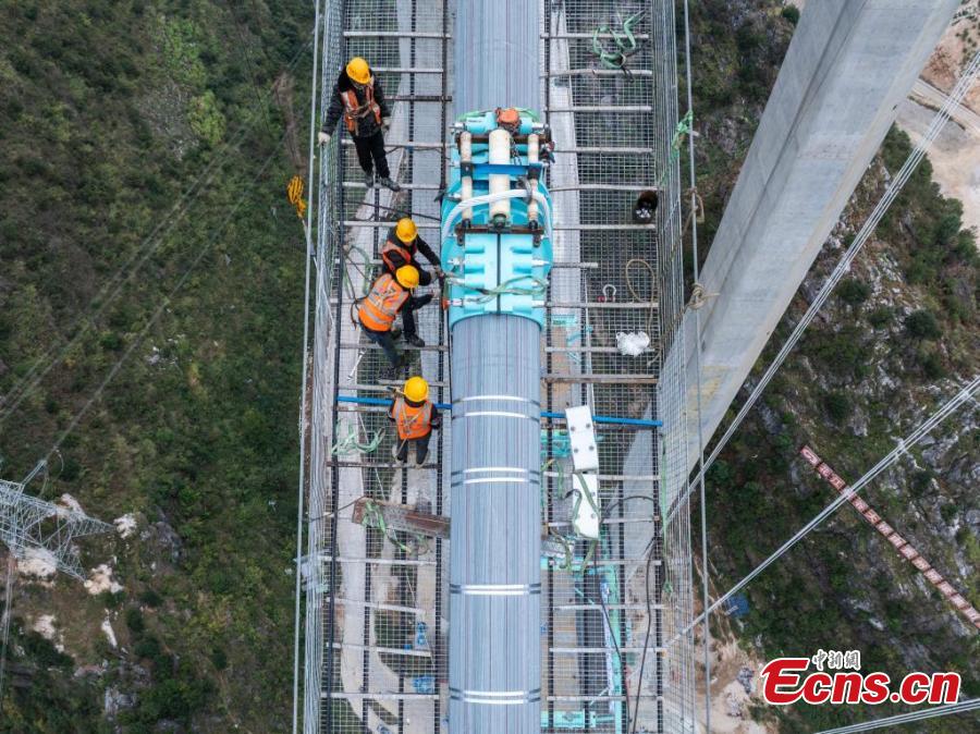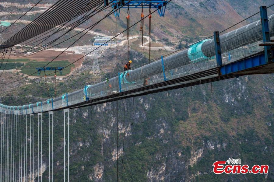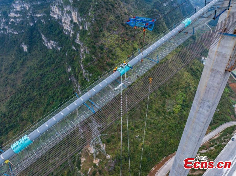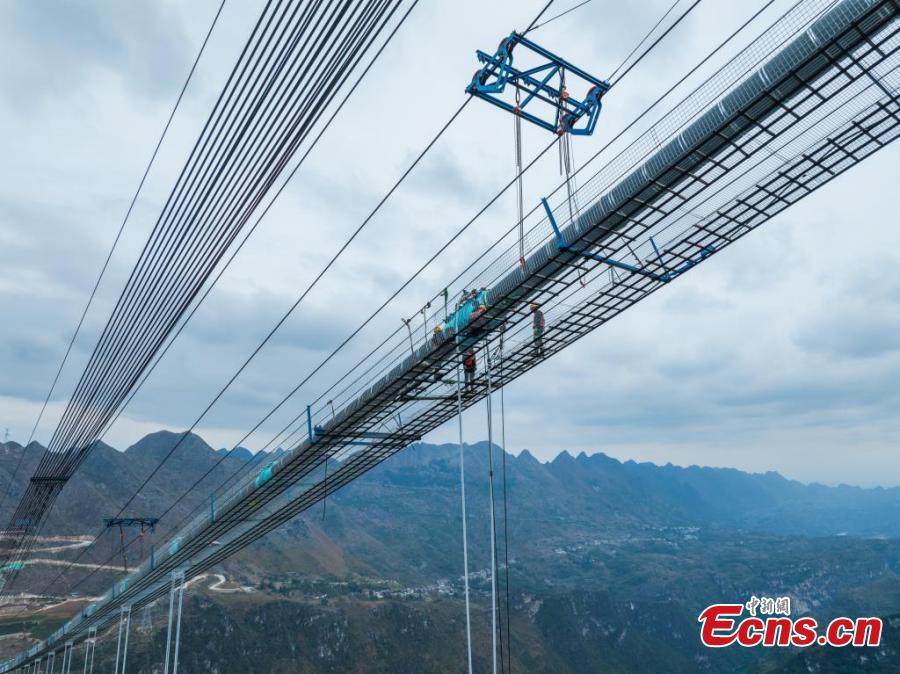 The 2,890-meter-long Huajiang grand canyon bridge is set to be the highest in the world after it is completed in 2025.