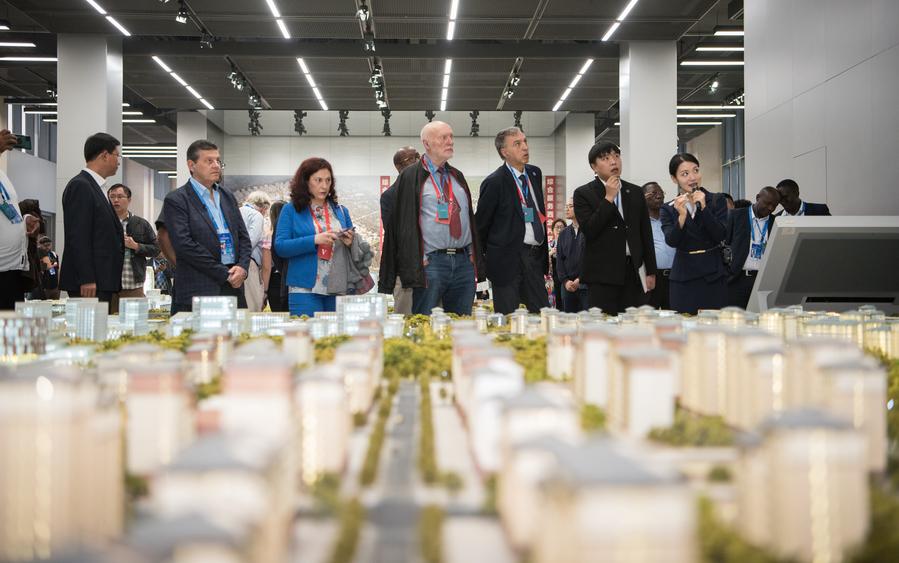 Foreign guests visit a service center in Xiong'an New Area in north China's Hebei Province, Oct. 12, 2024. (Photo by Liu Zunshuan/Xinhua)