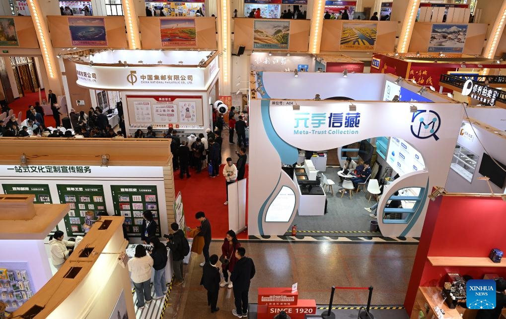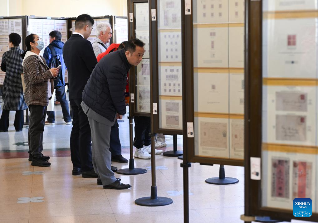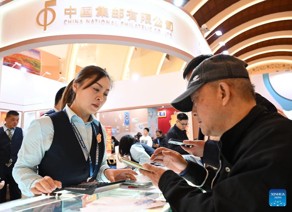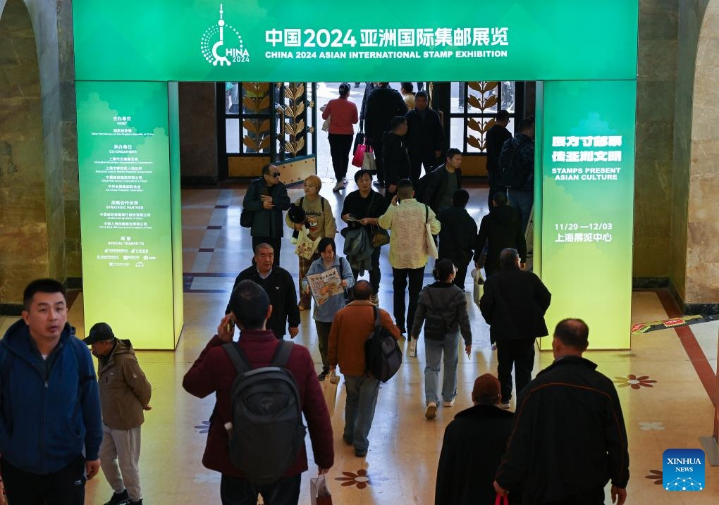 People visit China 2024 Asian International Stamp Exhibition at Shanghai Exhibition Center in east China's Shanghai on Nov. 29, 2024. The exhibition opened on Friday and will last for 5 days. (Xinhua/Li He)