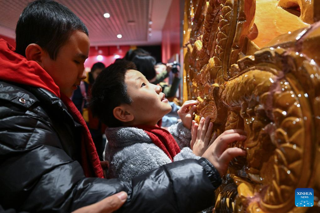 Students from the Beijing School for the Blind touch a Chiwen model, a roof ornament on ancient Chinese buildings, at Sensory Experience Gallery of the Palace Museum in Beijing, capital of China, Dec. 1, 2024. Sensory Experience Gallery, co-founded by Palace Museum and China Disabled Persons' Federation, was inaugurated here on Sunday, featuring creative cultural works, cultural experiences, and study tours. It integrates multi-sensory experiences to make culture more accessible for people with disabilities. (Xinhua/Li Xin)