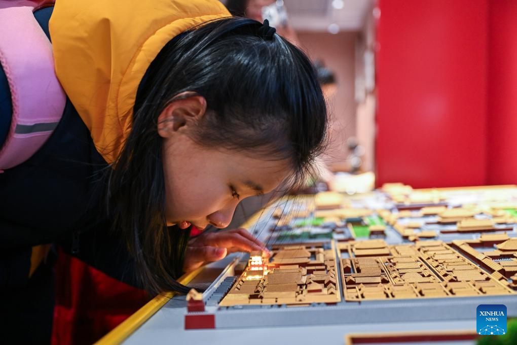 A student from the Beijing School for the Blind touches a sand table model of the Palace Museum at Sensory Experience Gallery of the Palace Museum in Beijing, capital of China, Dec. 1, 2024. Sensory Experience Gallery, co-founded by Palace Museum and China Disabled Persons' Federation, was inaugurated here on Sunday, featuring creative cultural works, cultural experiences, and study tours. It integrates multi-sensory experiences to make culture more accessible for people with disabilities. (Xinhua/Li Xin)