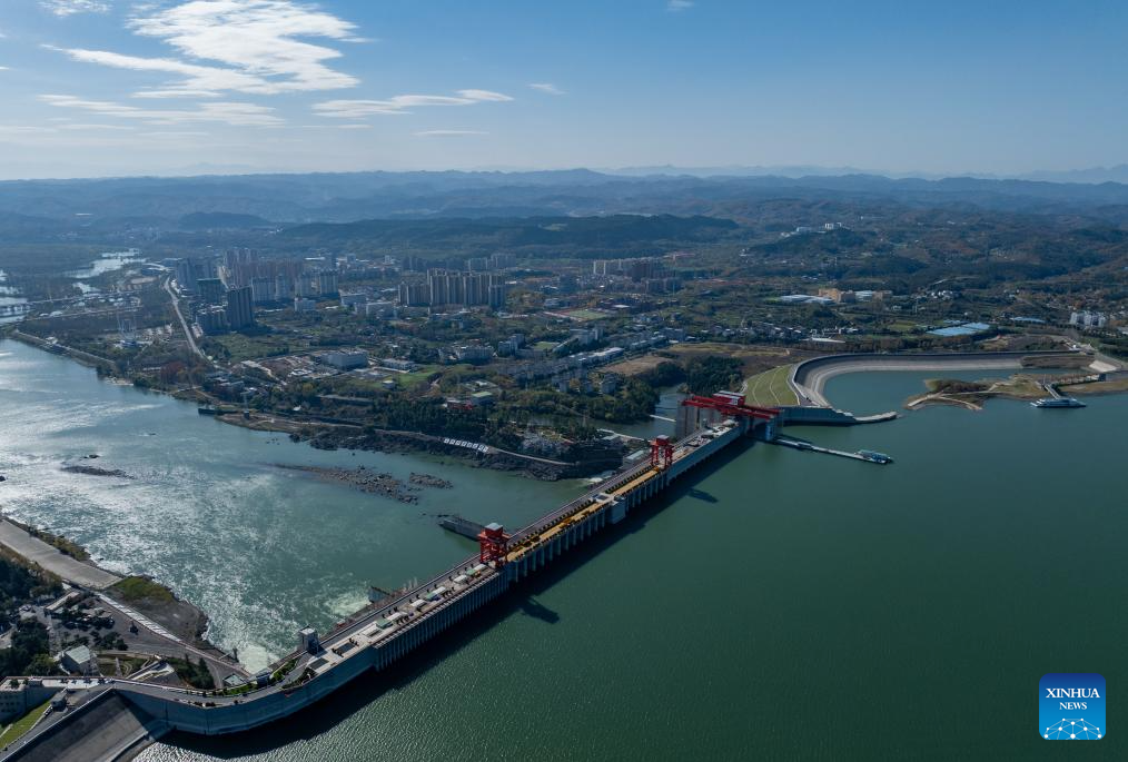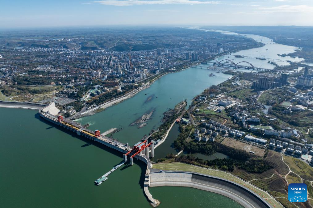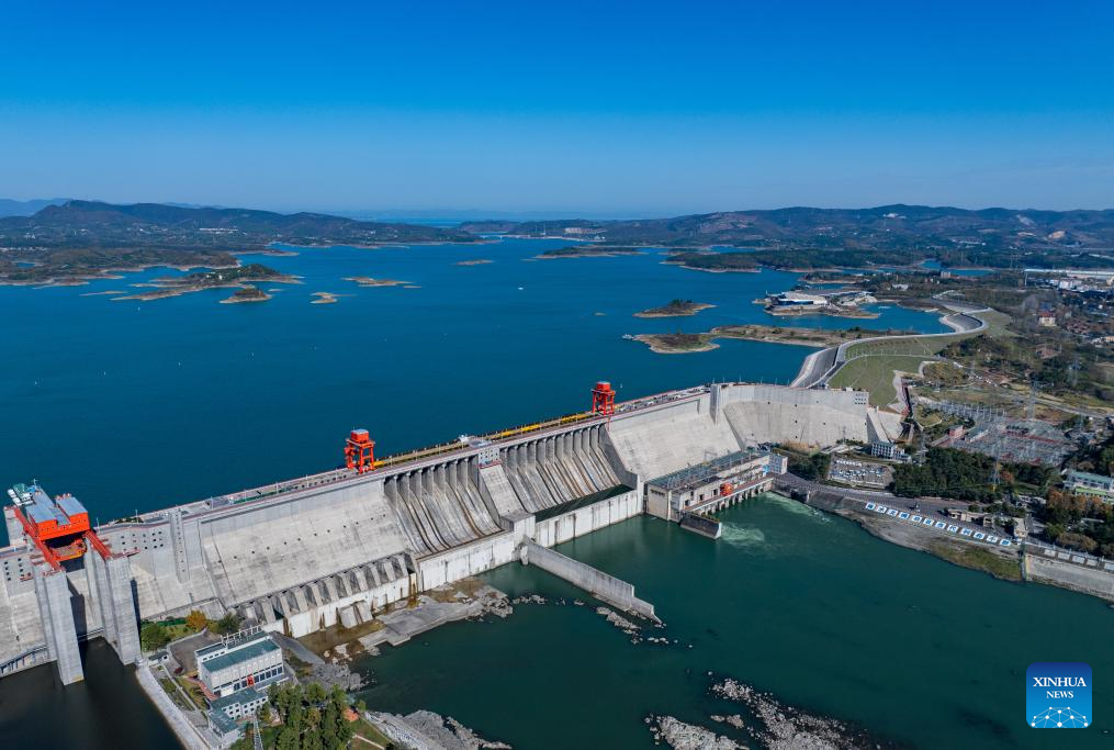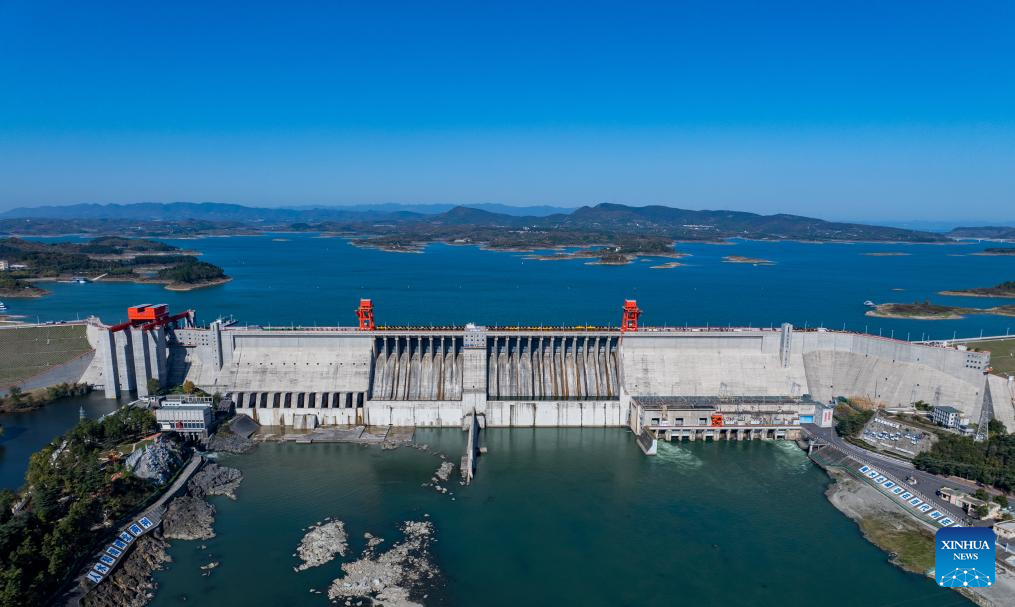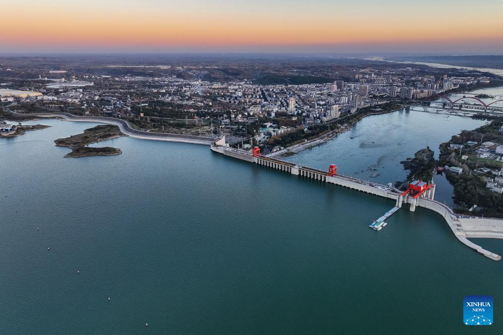An aerial drone photo taken on Nov. 29, 2024 shows a view of the Danjiangkou Dam in central China's Hubei Province. (Xinhua/Hu Jingwen)