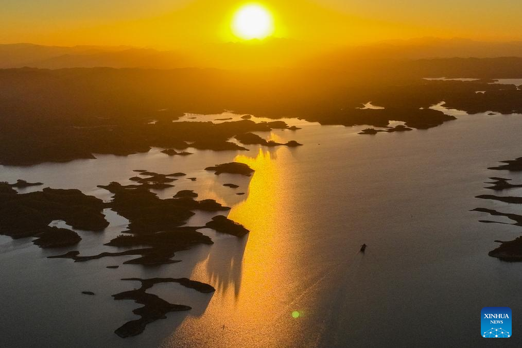 An aerial drone photo taken on Nov. 29, 2024 shows a view of the Danjiangkou Reservoir in central China's Hubei Province. (Xinhua/Hu Jingwen)