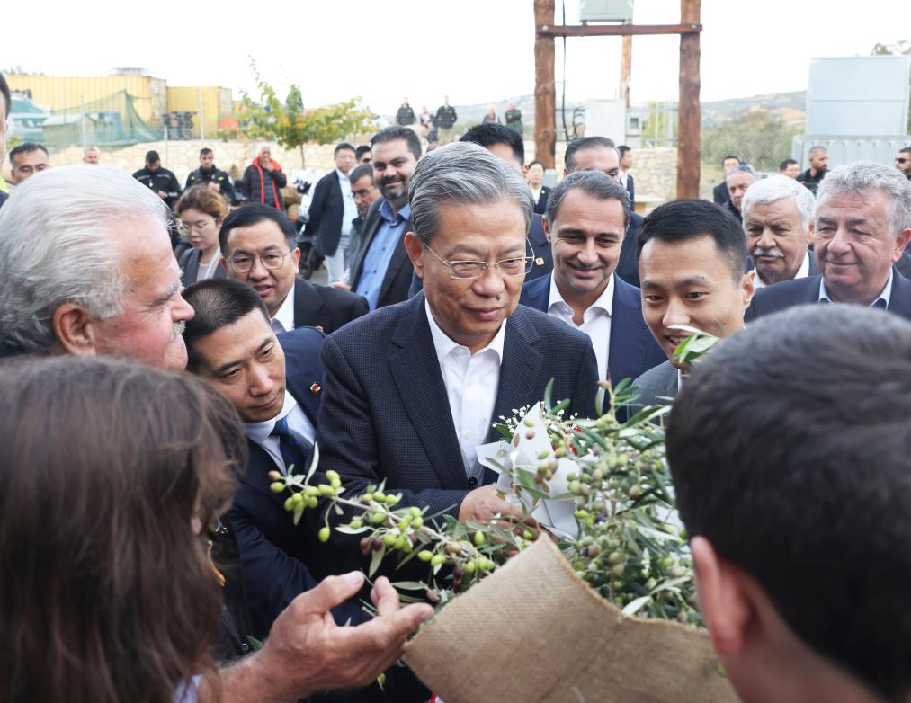 Zhao Leji, chairman of the Standing Committee of China's National People's Congress, visits agricultural projects in the Region of Crete, Greece, Nov. 27, 2024. Zhao paid an official goodwill visit to Greece at the invitation of Constantine Tassoulas, president of the Greek parliament, from Wednesday to Saturday. (Xinhua/Liu Weibing)
