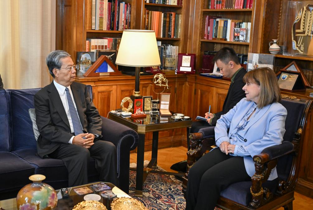 When meeting with Sakellaropoulou, Zhao conveyed to her the cordial greetings and best wishes from Chinese President Xi Jinping, noting that since the establishment of diplomatic ties more than half a century ago, bilateral ties have been developing in a sound and steady manner.