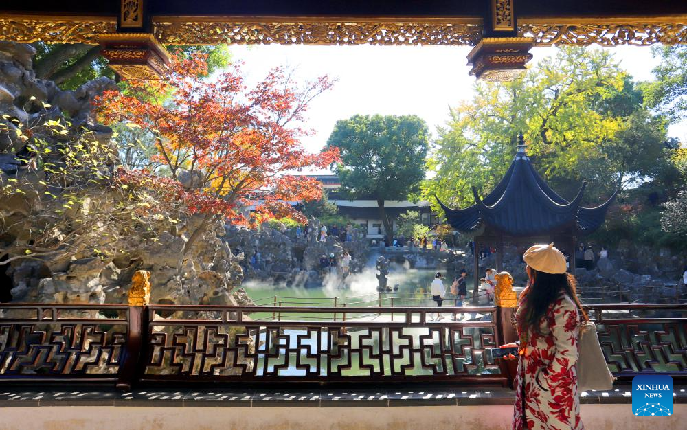Tourists visit the Lion Forest Garden in Suzhou, east China's Jiangsu Province, Nov. 29, 2024. (Photo by Wang Jiankang/Xinhua)