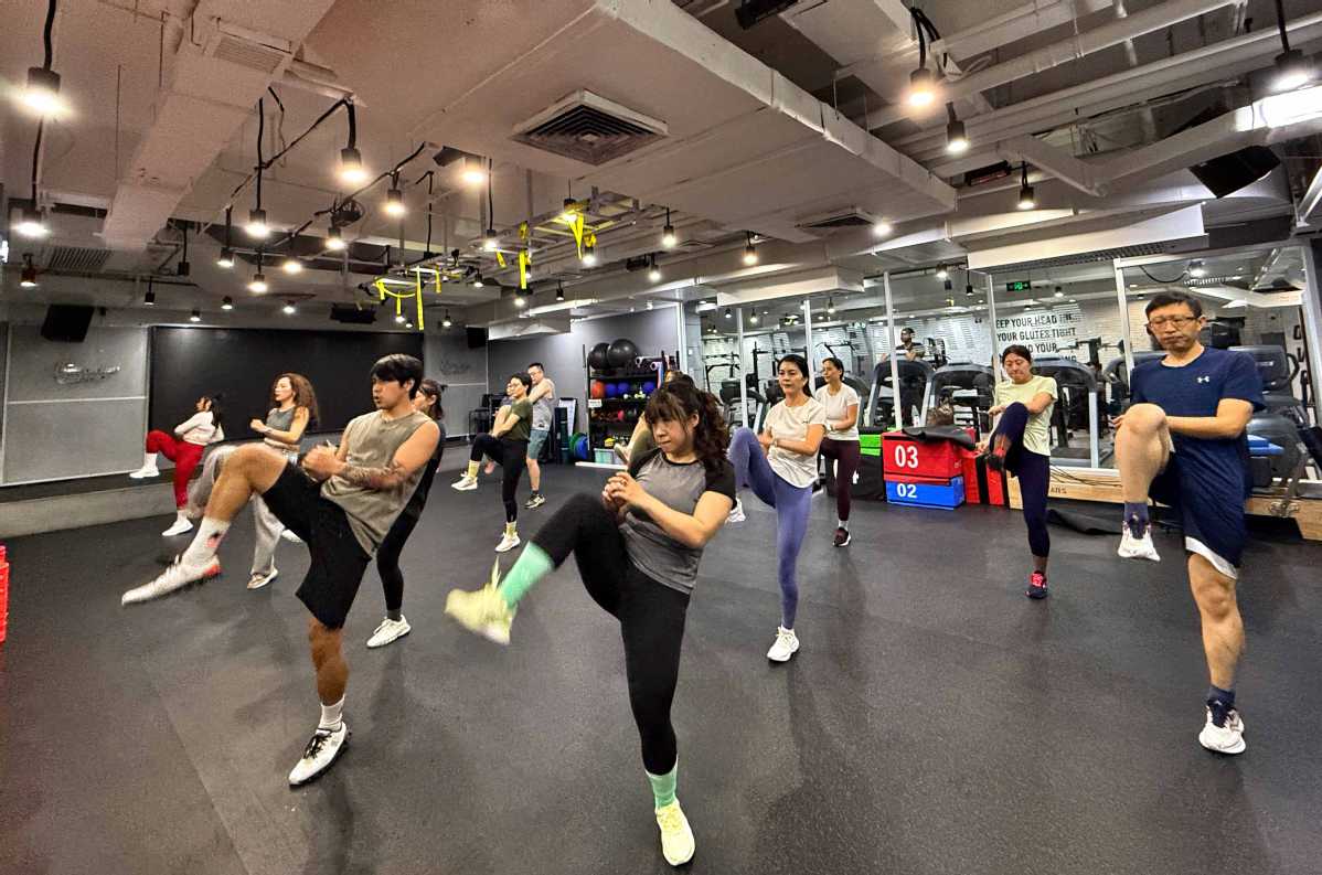 Fitness enthusiasts attend a Body Combat group exercise class at Locker Space gym in Beijing late last month. (DU LIANYI/CHINA DAILY)