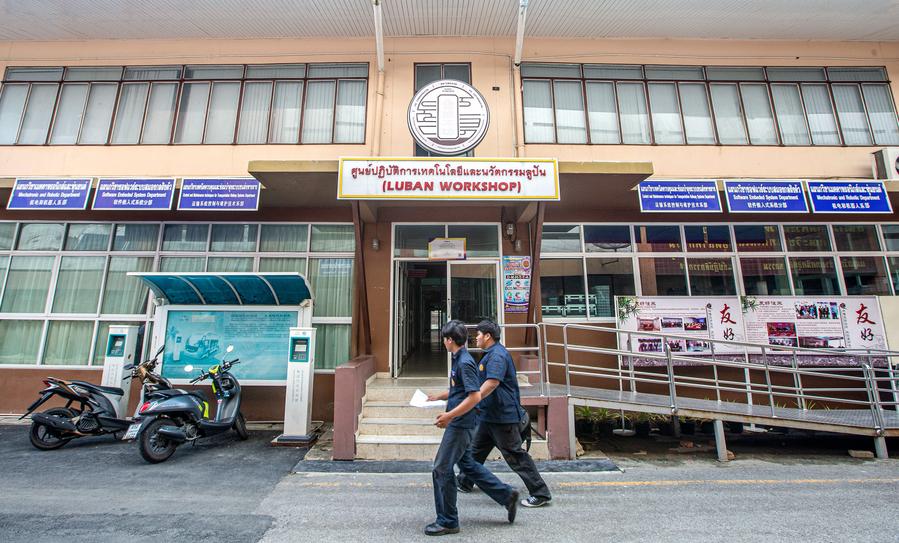 Students walk past the Luban Workshop of Ayutthaya Technical College in Ayutthaya, Thailand, Sept. 29, 2023. (Xinhua/Wang Teng)