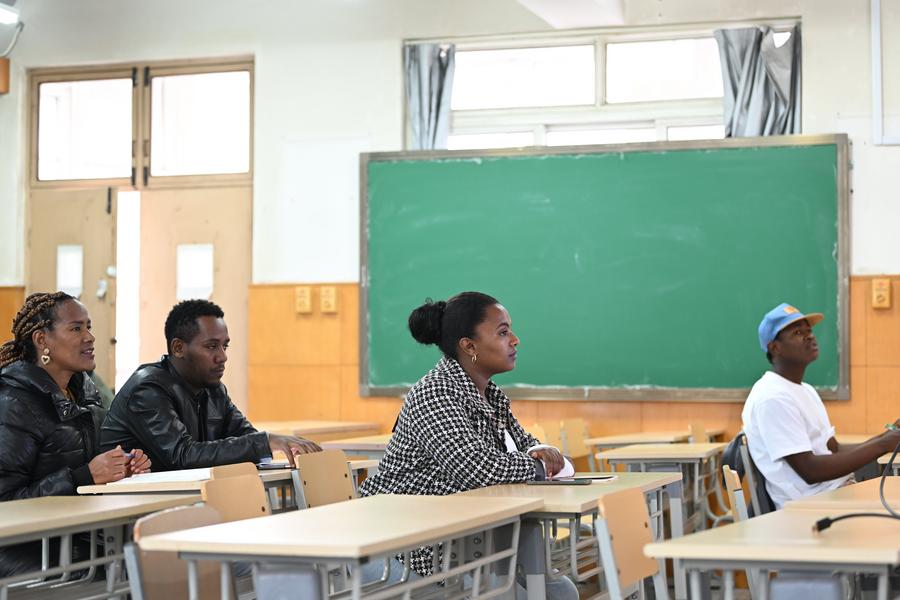 Kalkidan (2nd R) attends a class at the Tianjin University of Technology and Education in Tianjin, north China, Nov. 22, 2024. (Xinhua/Li Ran)