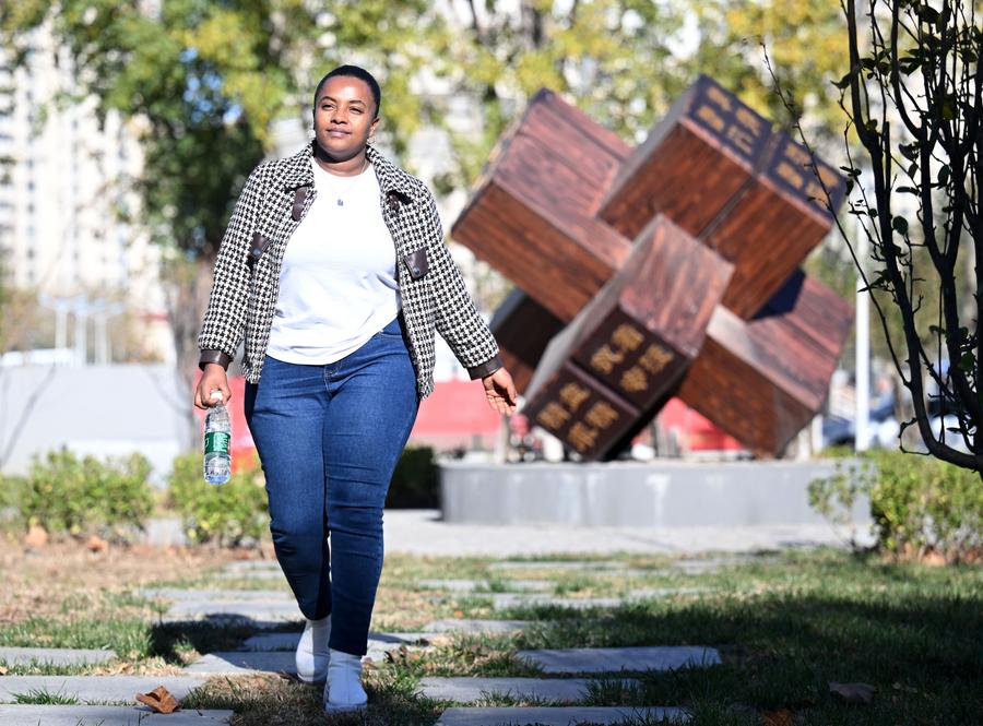 Kalkidan walks in the campus of Tianjin University of Technology and Education in Tianjin, north China, Nov. 21, 2024. (Xinhua/Zhao Zishuo)