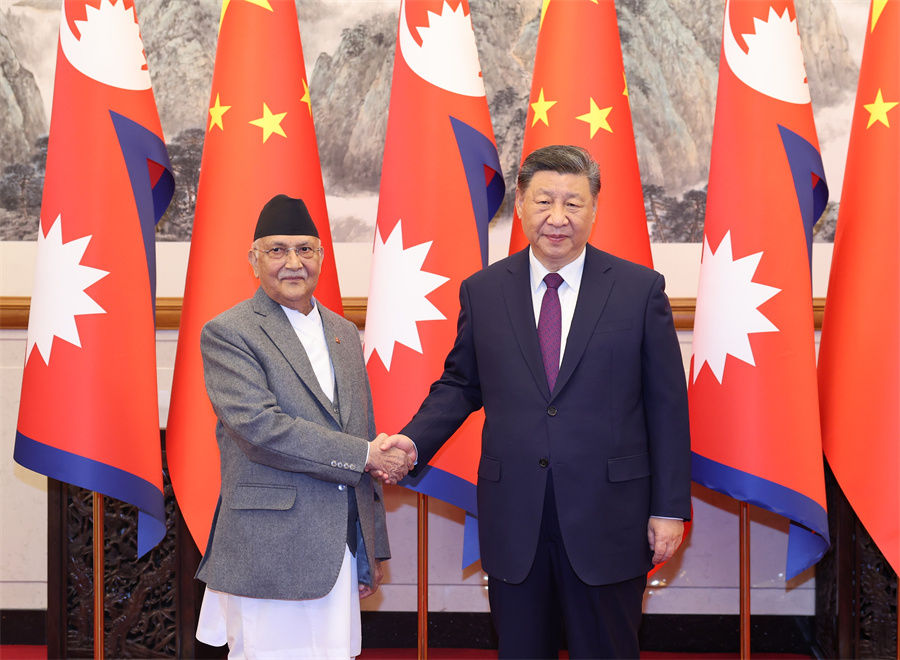 Xi appreciated Oli's long-standing dedication to China-Nepal friendship, saying that the two nations have treated each other with sincerity, mutual respect, and mutual support, and maintained sound and steady development of bilateral ties.