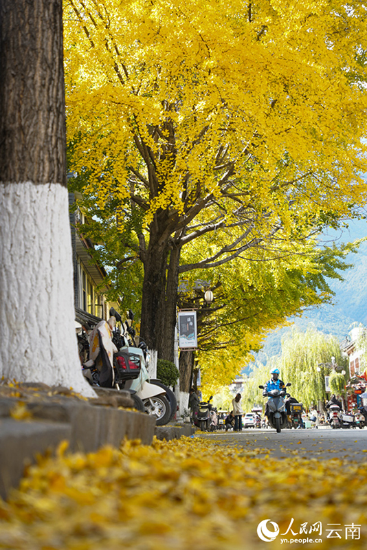 Ginkgo tree foliage decorates the old town of Dali, SW China's Yunnan in early winter (3)