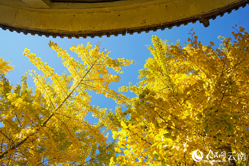 A photo shows the beauty of ginkgo leaves in the old town of Dali, southwest China's Yunnan Province. (Photo by Ma Wen)