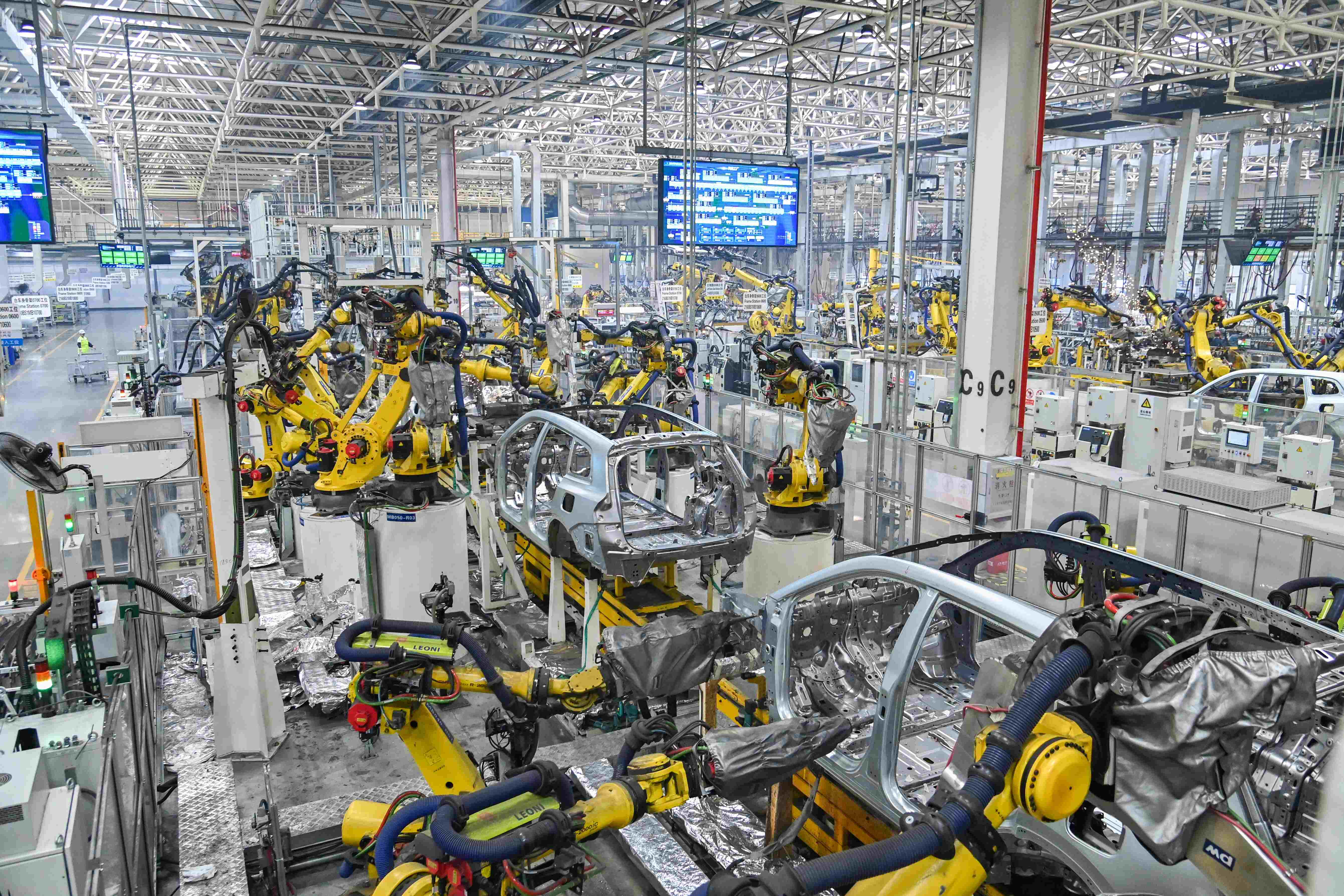 Robotic arms weld vehicle frames in a workshop of an intelligent factory of Chinese carmaker Seres in Shapingba district, southwest China's Chongqing municipality. (People's Daily Online/Sun Kaifang)