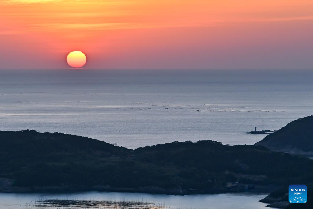 This photo shows the sunrise scenery in Sansha Town of Xiapu County, southeast China's Fujian Province, Nov. 29, 2024.