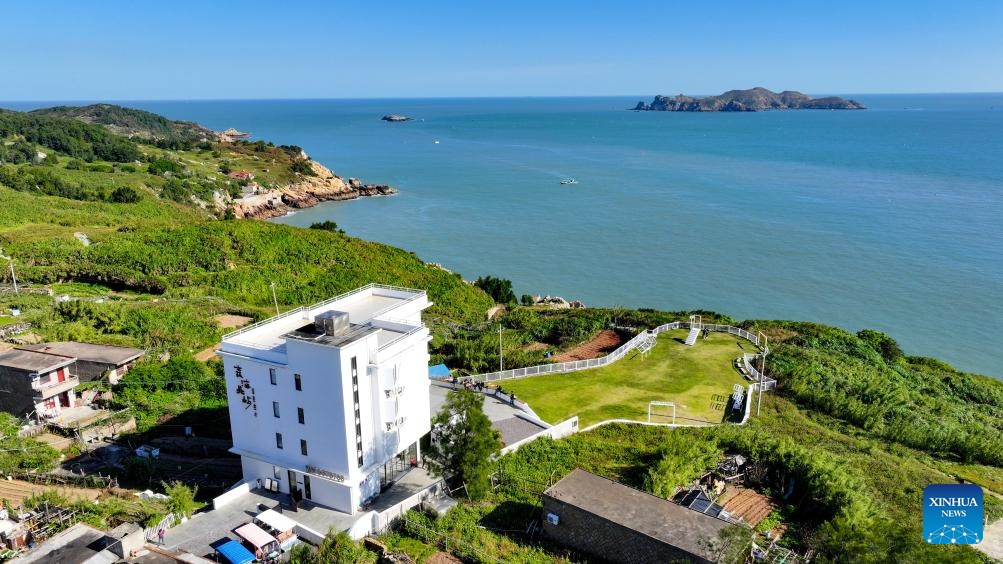An aerial drone photo shows a homestay on Beishuang island in Xiapu County, southeast China's Fujian Province, Nov. 29, 2024.