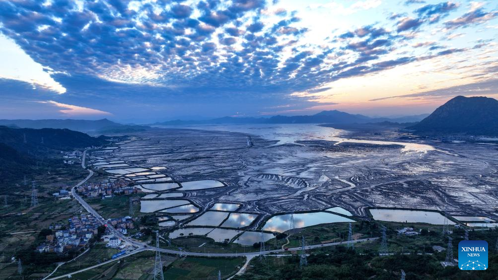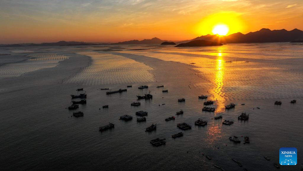 An aerial drone photo shows the sunset scenery in Sansha Town of Xiapu County, southeast China's Fujian Province, Nov. 29, 2024.