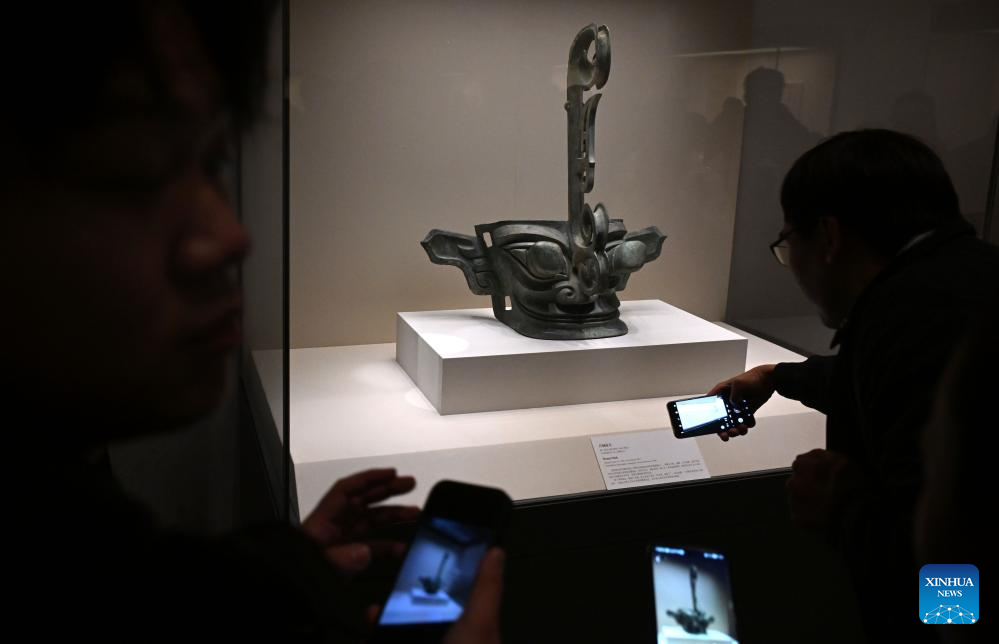 This photo shows a bronze mask excavated from the Sanxingdui site exhibited at the National Museum of China in Beijing, capital of China, Dec. 3, 2024.