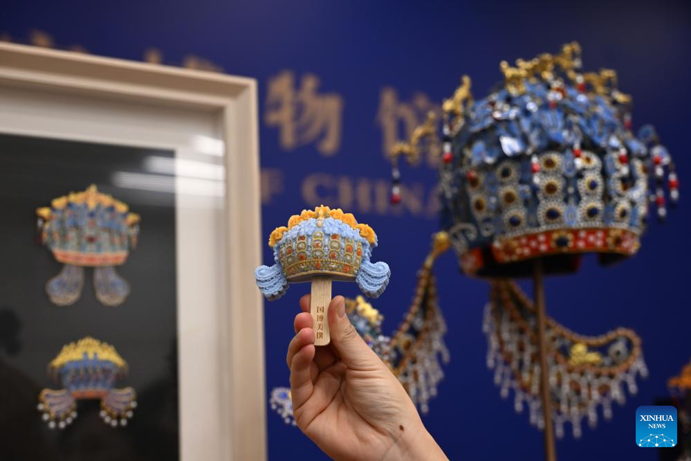 A person holds a "Queen's Crown"-shaped ice cream at the National Museum of China in Beijing, capital of China, Dec. 3, 2024.