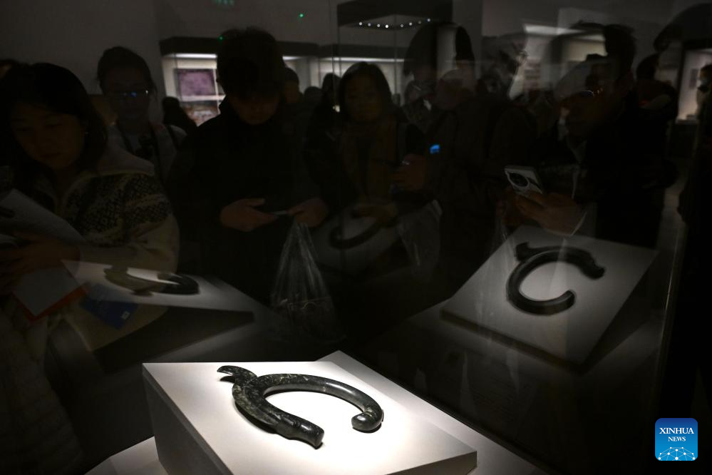 Visitors view a jade dragon of the Hongshan Culture at the National Museum of China in Beijing, capital of China, Dec. 3, 2024.