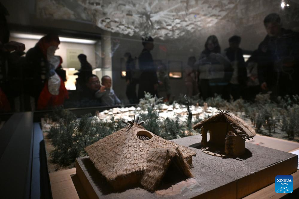 Visitors view a model of the Jiangzhai site of the Yangshao culture at the National Museum of China in Beijing, capital of China, Dec. 3, 2024.
