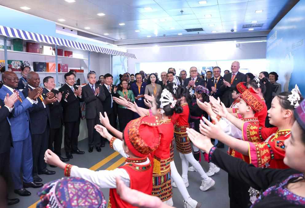 Chinese Foreign Minister Wang Yi, also a member of the Political Bureau of the Communist Party of China Central Committee, watches a performance with the attendees at a promotional event hosted by the Foreign Ministry to present the Hainan Free Trade Port to the world in Beijing, capital of China, Dec. 4, 2024. Wang attended the promotional event and delivered a speech. (Xinhua/Pang Xinglei)