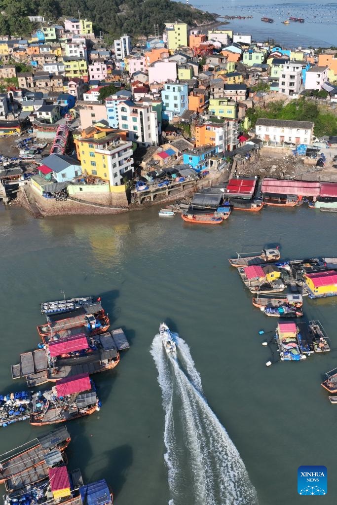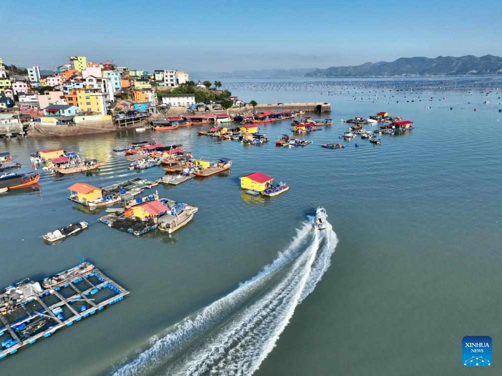 An aerial drone photo taken on Dec. 2, 2024 shows the Qingshan Island and fishing community in southeast China's Fujian Province. (Xinhua/Feng Kaihua)