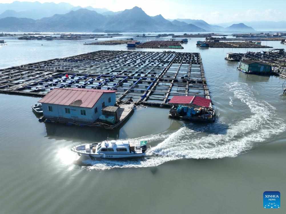 Shi Jinquan drives a boat at Sanduao sea area of Ningde City in southeast China's Fujian Province, Dec. 2, 2024. (Xinhua/Zhang Cheng)