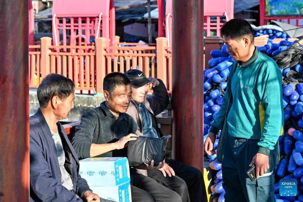 Shi Jinquan delivers packages at a dock of Xiadangwei Village of Sandu Town, Ningde City, southeast China's Fujian Province, Dec. 2, 2024. (Xinhua/Zhang Cheng)?