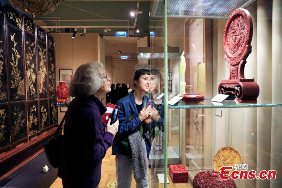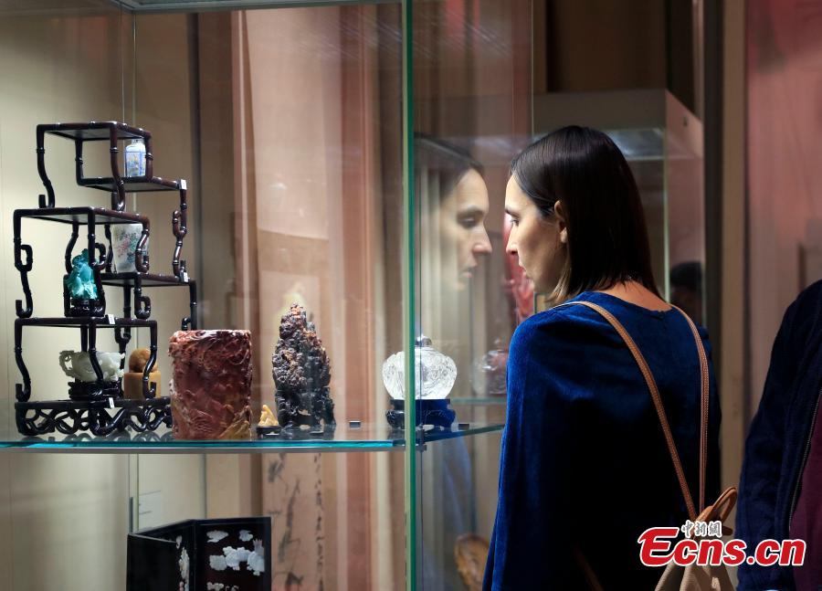 People view exhibits during a special exhibition to commemorate the 75th anniversary of the establishment of diplomatic ties between China and Russia at the State Museum of Oriental Art in Moscow, Russia, Dec. 4, 2024. (China News Service/Tian Bin)