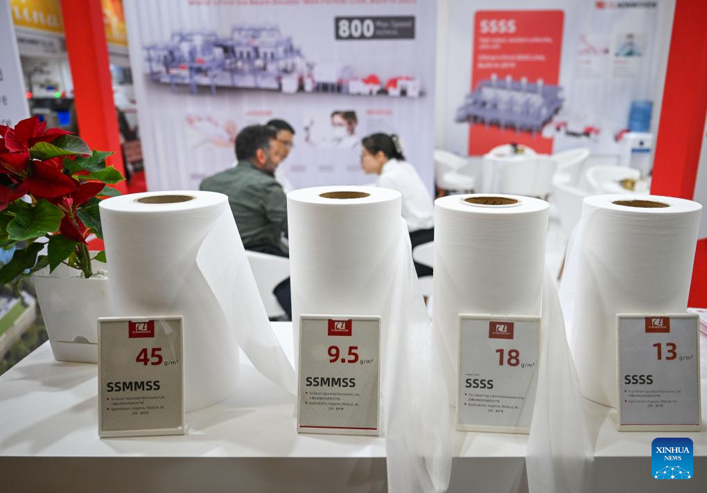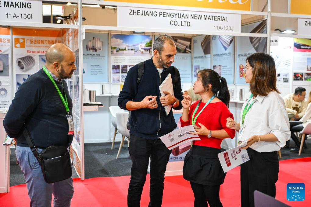 This photo taken on Dec. 4, 2024 shows exhibits at China Plastics Industry (Türkiye) Brand Exhibition in Istanbul, Türkiye. The four-day-long exhibition opened here on Wednesday and is held in parallel with the Plast Eurasia Istanbul 2024. (Xinhua/Liu Lei)