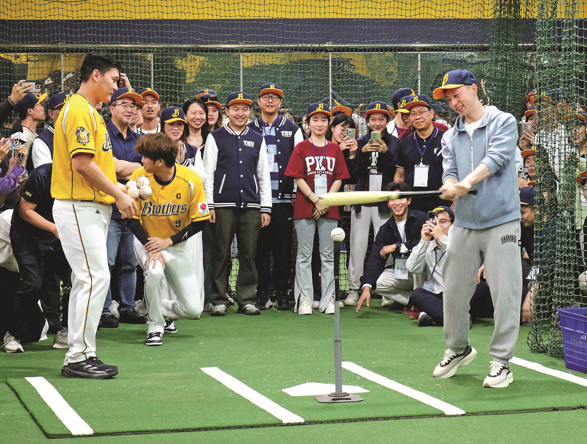 On Sunday, the delegation experienced baseball, one of the most popular sports in Taiwan, at the Taichung Intercontinental Baseball Stadium. They learned to swing bats to hit the ball under the instruction of Taiwan players. After two failed attempts, Ma Long succeeded on his third try, and jokingly said, "The first two were just bad examples!" Laughter filled the air among the surrounding students.