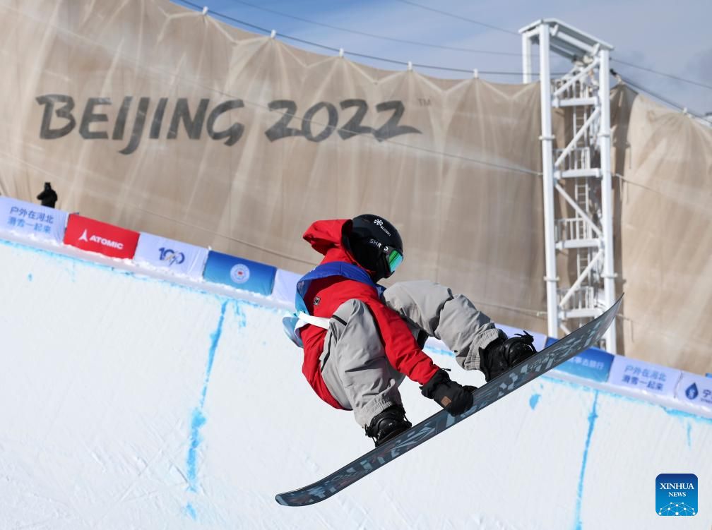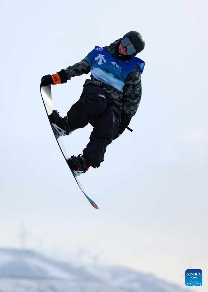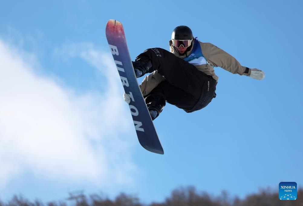 Gao Hongbo of China competes during the men's qualification of FIS Snowboard Halfpipe World Cup 2024 in Zhangjiakou, north China's Hebei Province, Dec. 6, 2024. (Xinhua/Luo Yuan)