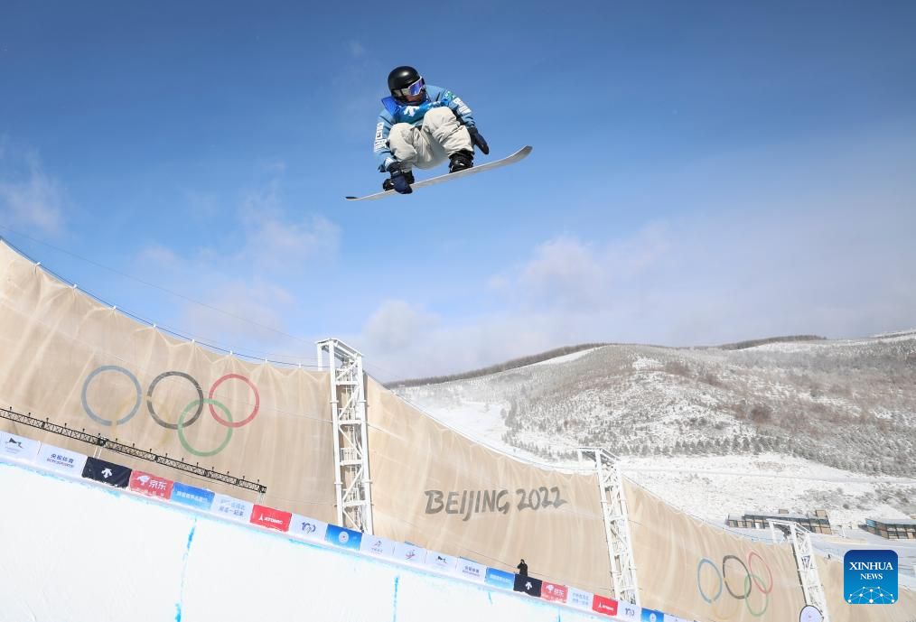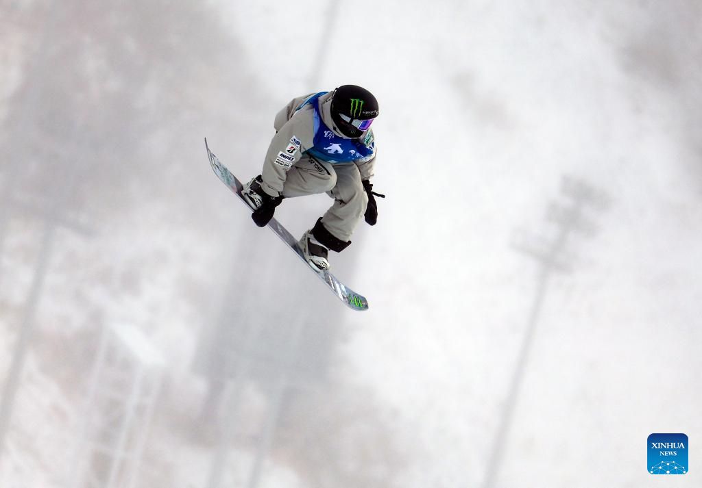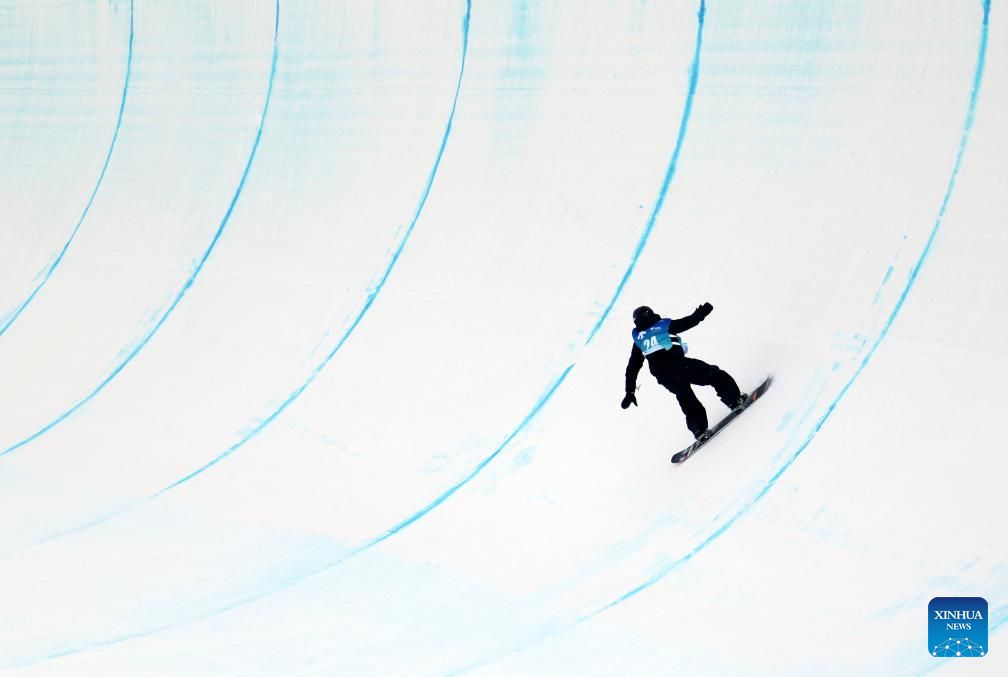 Campbell Melville Ives of New Zealand competes during the men's qualification of FIS Snowboard Halfpipe World Cup 2024 in Zhangjiakou, north China's Hebei Province, Dec. 6, 2024. (Xinhua/Luo Yuan)