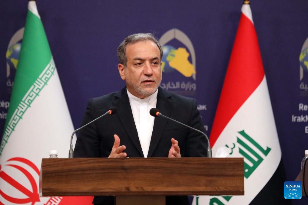 Iranian Foreign Minister Seyed Abbas Araghchi speaks at a joint press conference with Iraqi Foreign Minister Fuad Hussein and Syrian Minister of Foreign Affairs and Expatriates Bassam Sabbagh (not in the picture) after a trilateral meeting in Baghdad, Iraq, on Dec. 6, 2024. On Friday, Iraqi Foreign Minister Fuad Hussein held a trilateral meeting with Araghchi and Sabbagh to discuss the deteriorating situation in Syria and its consequences on neighboring countries. (Xinhua/Khalil Dawood)