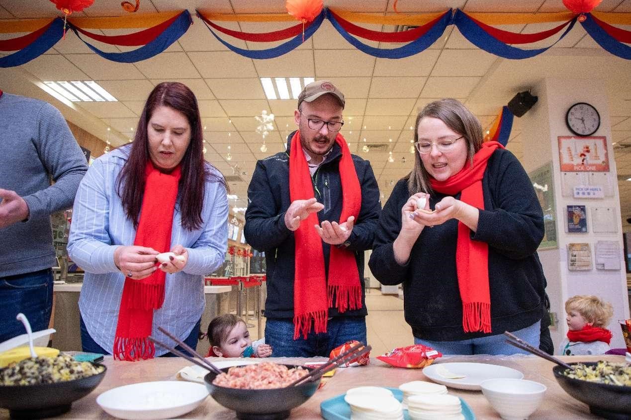 International teachers with Kang Chiao International School in Kunshan city, east China's Jiangsu province, learn to make dumplings with their families to celebrate the upcoming Spring Festival, February 7, 2024. (People's Daily Online/Yuan Xinyu)