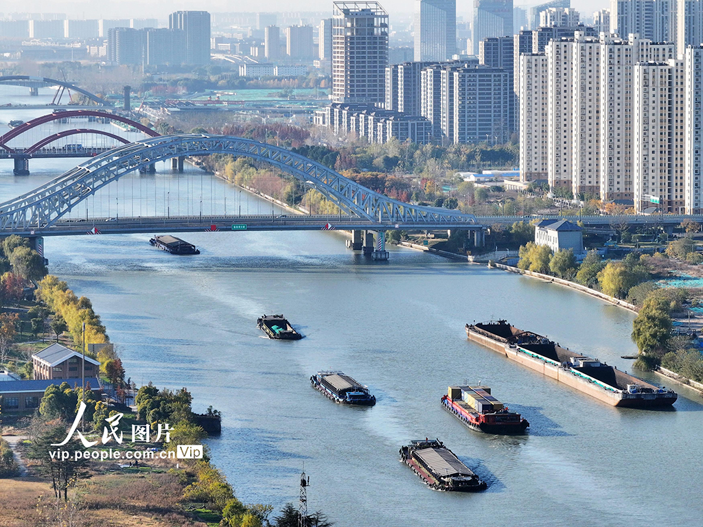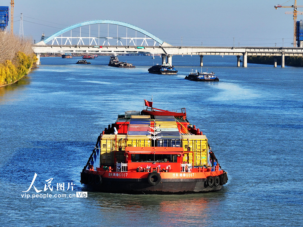 Since the onset of winter, the Yangzhou section of the Beijing-Hangzhou Grand Canal in east China's Jiangsu Province has been bustling with activity. Ships carrying coal, steel, construction materials, and other goods travel orderly along the waterways, creating a lively and dynamic scene.?