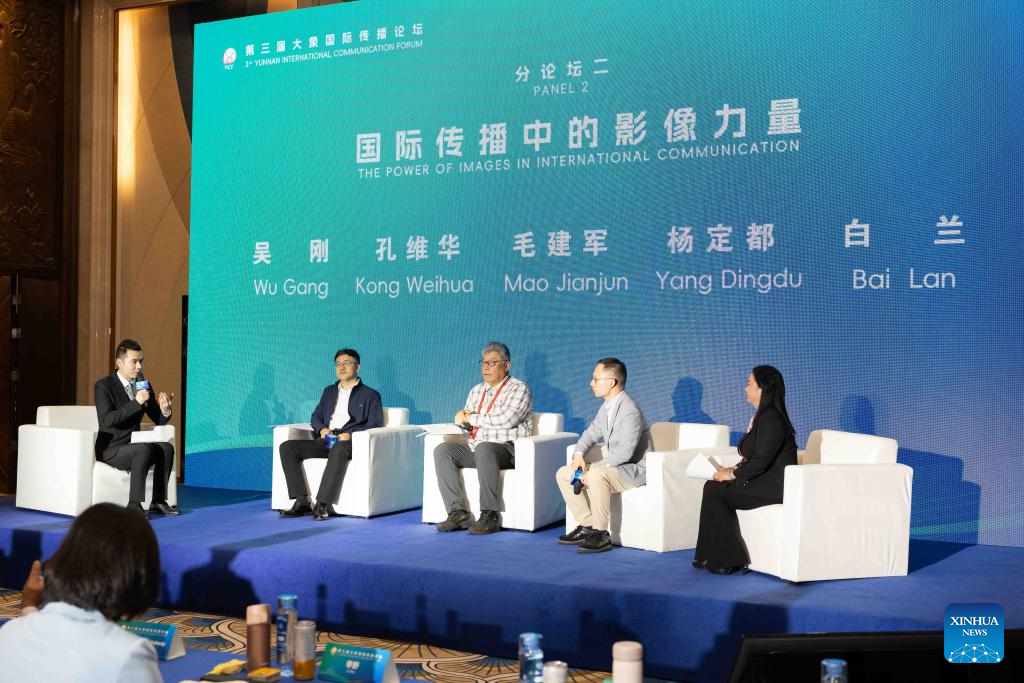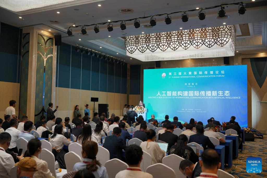 Participants attend a panel discussion during the 3rd Yunnan International Communication Forum in Xishuangbanna, southwest China's Yunnan Province, Dec. 10, 2024. The 3rd Yunnan International Communication Forum opened here on Tuesday. More than 200 scholars, officials and media representatives from 21 countries attended the forum. (Xinhua/Xin Yuewei)