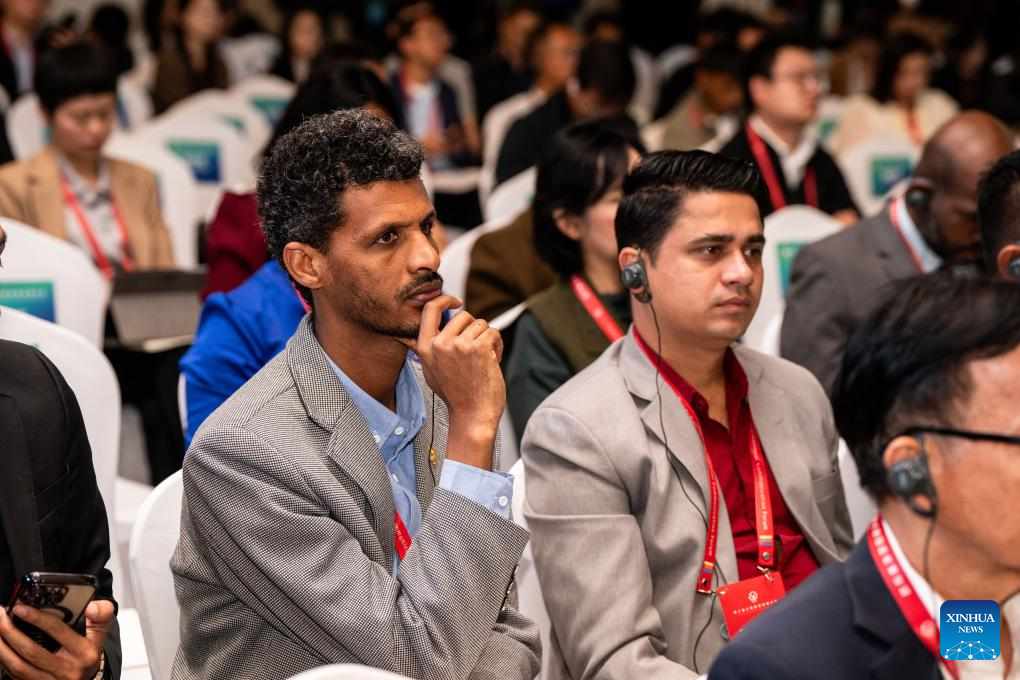 Participants attend the opening ceremony of the 3rd Yunnan International Communication Forum held in Xishuangbanna, southwest China's Yunnan Province, Dec. 10, 2024. The 3rd Yunnan International Communication Forum opened here on Tuesday. More than 200 scholars, officials and media representatives from 21 countries attended the forum. (Xinhua/Hu Chao)