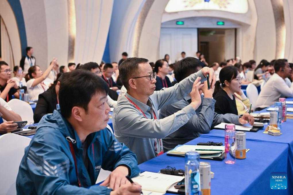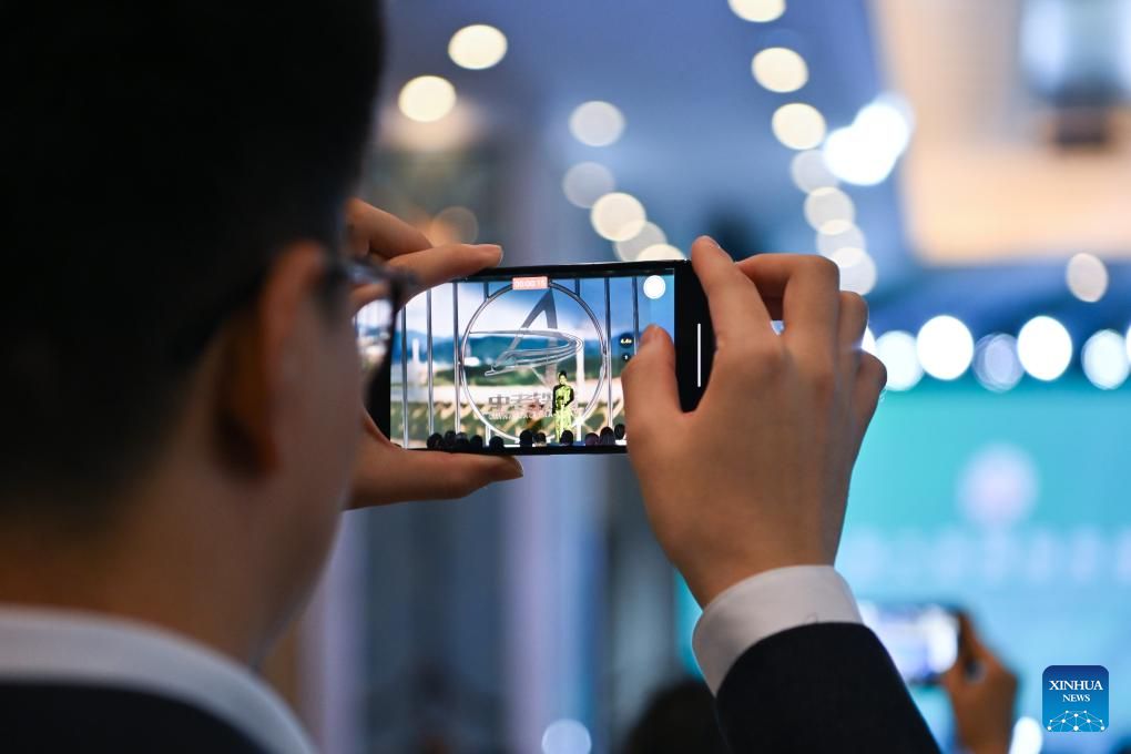 A participant shoots video on the main forum of the 3rd Yunnan International Communication Forum in Xishuangbanna, southwest China's Yunnan Province, Dec. 10, 2024. The 3rd Yunnan International Communication Forum opened here on Tuesday. More than 200 scholars, officials and media representatives from 21 countries attended the forum. (Xinhua/Xin Yuewei)