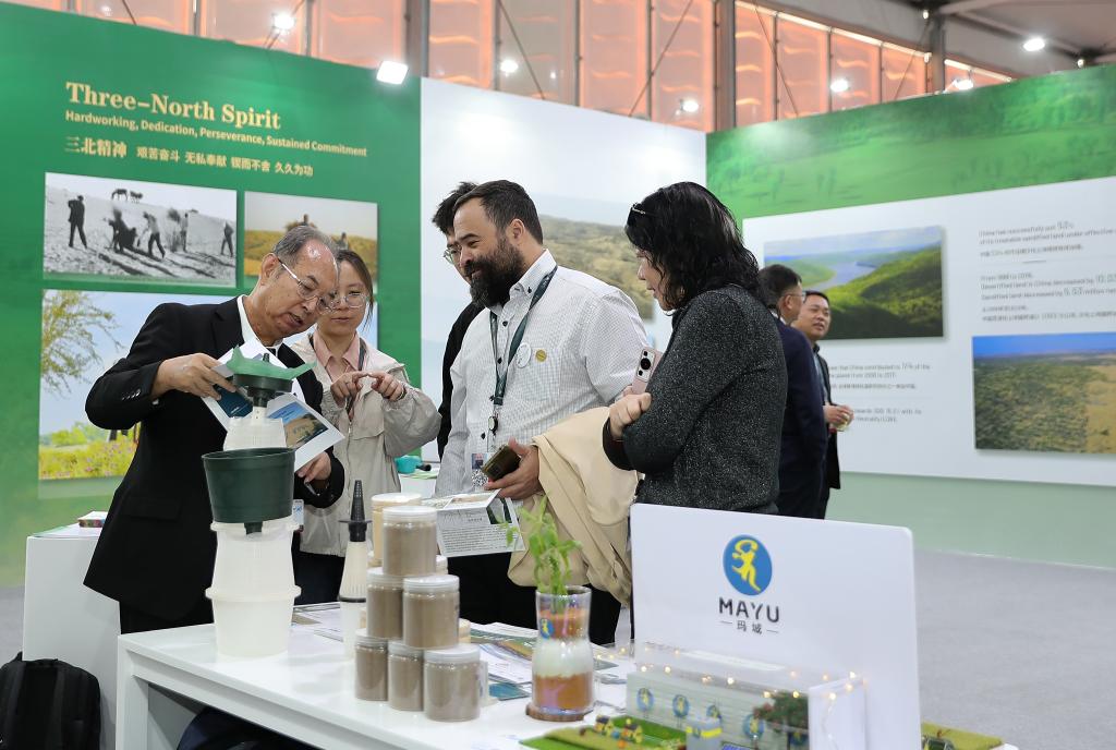 New technologies that China applied in its desertification control were showcased at the China Pavilion at an exhibition held along with summits, ministerial dialogues, award presentations, and theme days during COP16.