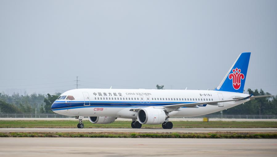 HAIKOU, Dec. 11 (Xinhua) -- The Flight CZ6786 took off from Guangzhou, south China's Guangdong Province and landed in Haikou at 12:57 p.m., marking a successful maiden commercial operation on the Guangzhou-Haikou route of China Southern Airlines with China's homegrown large passenger aircraft C919.