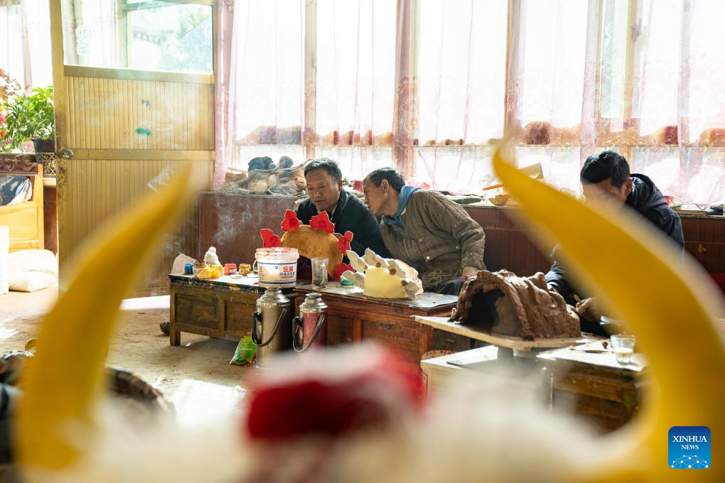 Shilok crafts a traditional Tibetan mask at a cooperative in Dagze District of Lhasa, southwest China's Xizang Autonomous Region, Dec. 9, 2024. (Xinhua/Jigme Dorje)