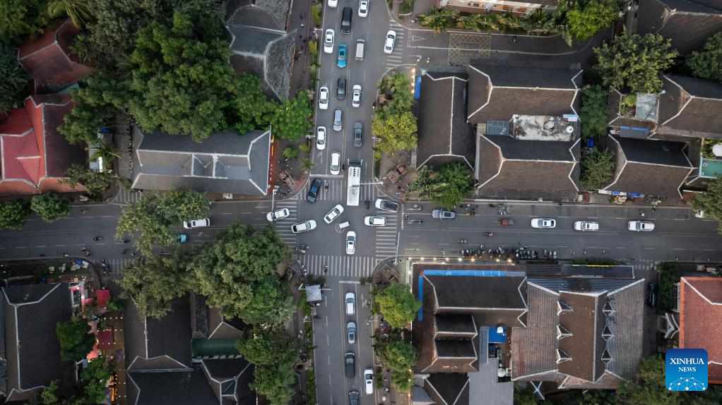 An aerial drone photo taken on Dec. 11, 2024 shows a view of Jinghong City in Xishuangbanna Dai Autonomous Prefecture, southwest China's Yunnan Province. (Xinhua/Meng Tao)