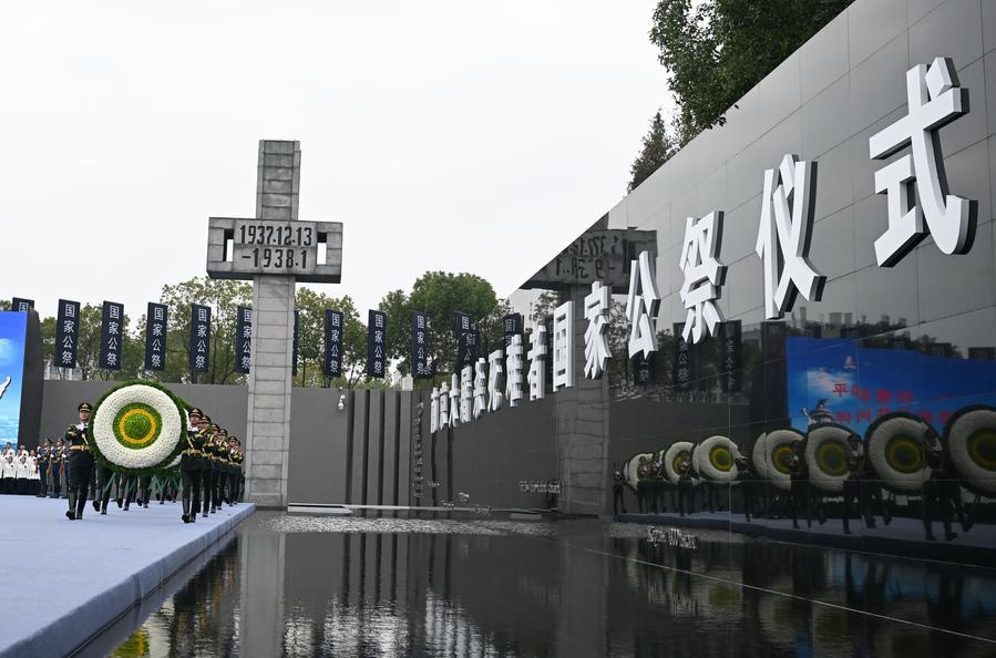 China holds its 10th national memorial ceremony for the Nanjing Massacre victims at the Memorial Hall of the Victims in Nanjing Massacre by Japanese Invaders in Nanjing, capital of east China's Jiangsu Province, Dec. 13, 2023. (Xinhua/Ji Chunpeng)