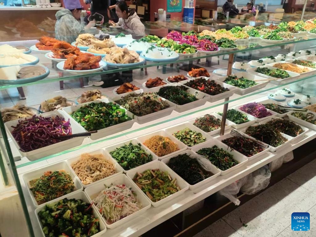 This undated photo shows dishes at Suzi Morning Tea restaurant in Wuzhong, northwest China's Ningxia Hui Autonomous Region. (Xinhua)