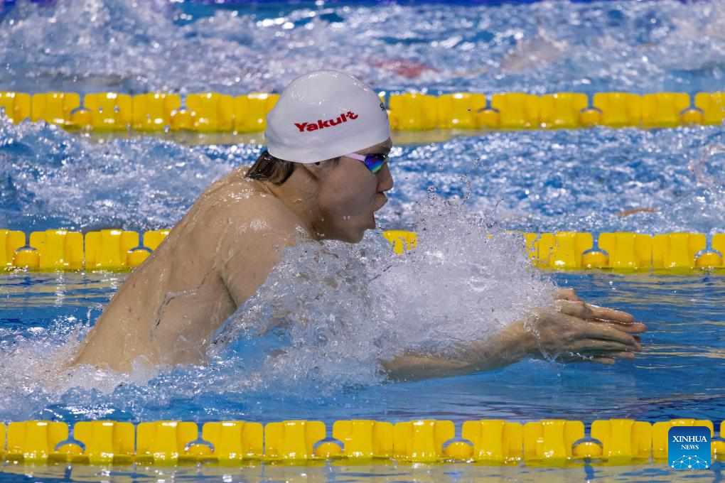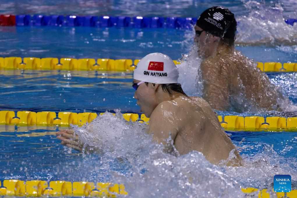 BUDAPEST, Dec. 12 (Xinhua) -- China dominated the breaststroke events at the World Aquatics Swimming Championships (25m) on Thursday, with Tang Qianting and Qin Haiyang both claiming victories.